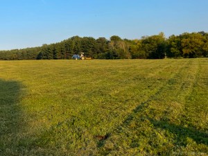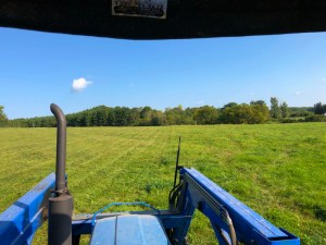 The growth wasn’t excessively tall but there were plenty of weeds maturing and we didn’t want them going to seed. I finally finished around 7:00 p.m. after almost 5 hours out on the tractor. At one point, feeling like it was taking too long, I tried running in a higher gear to speed up progress. The bouncing and jostling were a bit too much and the high gear made backing up hard to manage. All I could do was plod along at a steady pace in the lower gear and keep making passes until the entire field was finally cut.