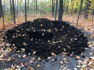 Our great need for fill along the driveway is conveniently coinciding with my goal of clearing out space in the compost area to make room for the coming winter.