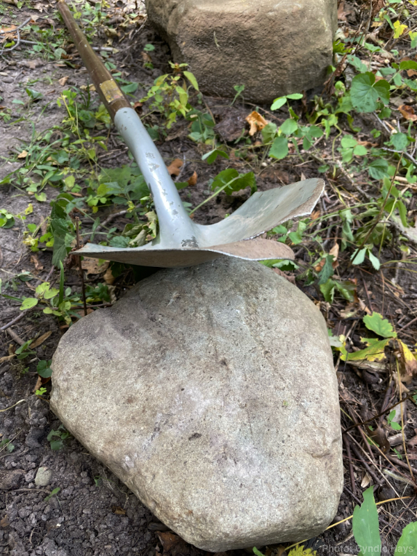 Cyndie claimed the shovel in the photo above from her mom’s garage last year as they cleared out possessions in advance of selling the property. Her dad had been involved in more than one of these ground breaking events over the years, keeping the shovels as mementos. This one is the second to have suffered this kind of fate when used in projects around our property.