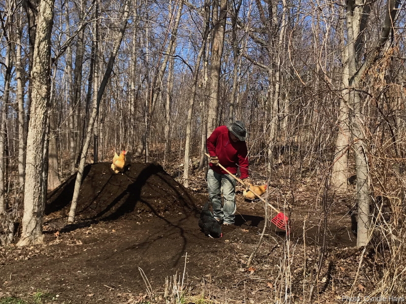 Now that Cyndie is home to entertain Delilah, I nabbed my chance to revisit my old days of turning composting manure piles, much to the chicken’s delight.
