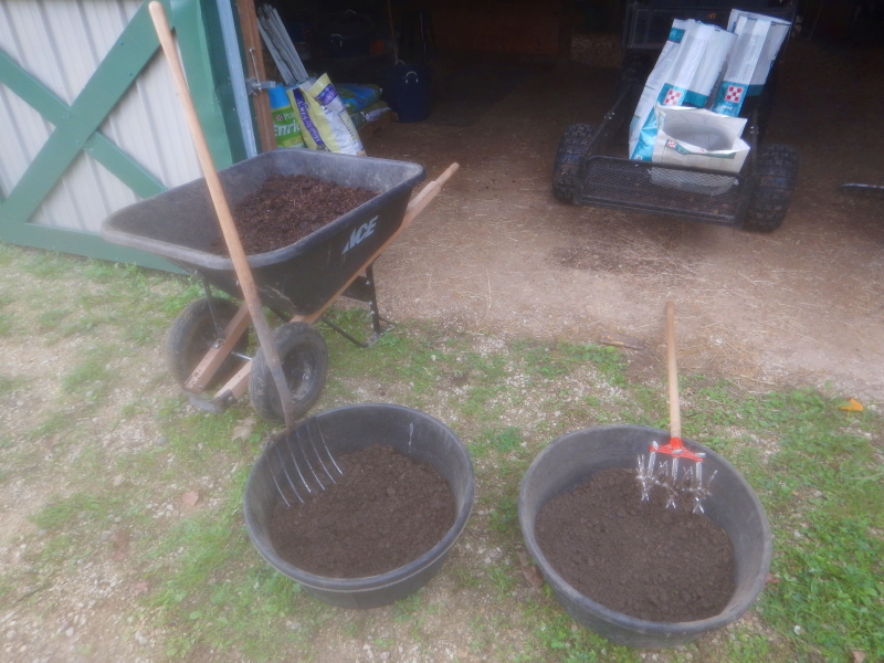 It’s kind of like harvesting our first crop! There is a different reward to mixing the composted manure with dirt, as opposed to just using it to fill low spots around our property.