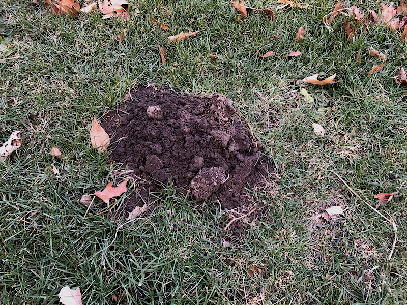 The warmth seems to have kicked our burrowing rodents into high gear. By the size of some of the fresh dirt piles showing up they must be building extravagant palaces beneath the turf. The soil they bring up looks so pristine. I really should collect it for future use. Not a stone to be found among the mounds of wonderfully sifted dirt.