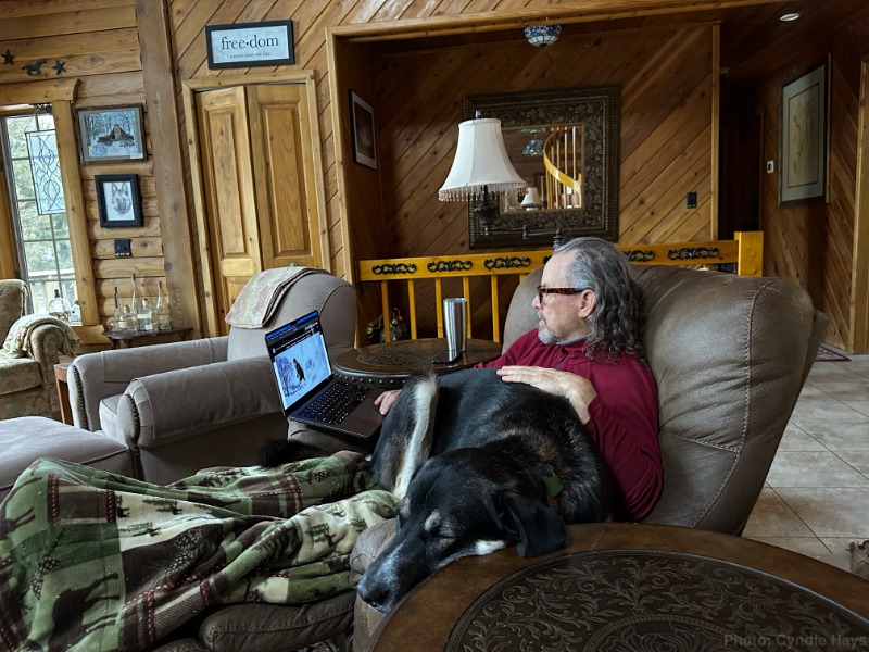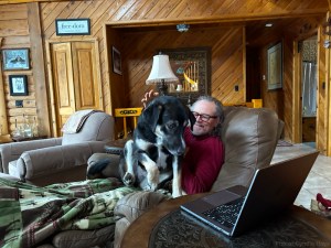 At 75 pounds and with a long enough body to stand taller than us, Asher is far from being a comfortable lap dog. That hasn’t stopped him. He likes to climb on top of me in the recliner while I am occupied with my computer. I think he was proofreading one of my blog posts in that picture.