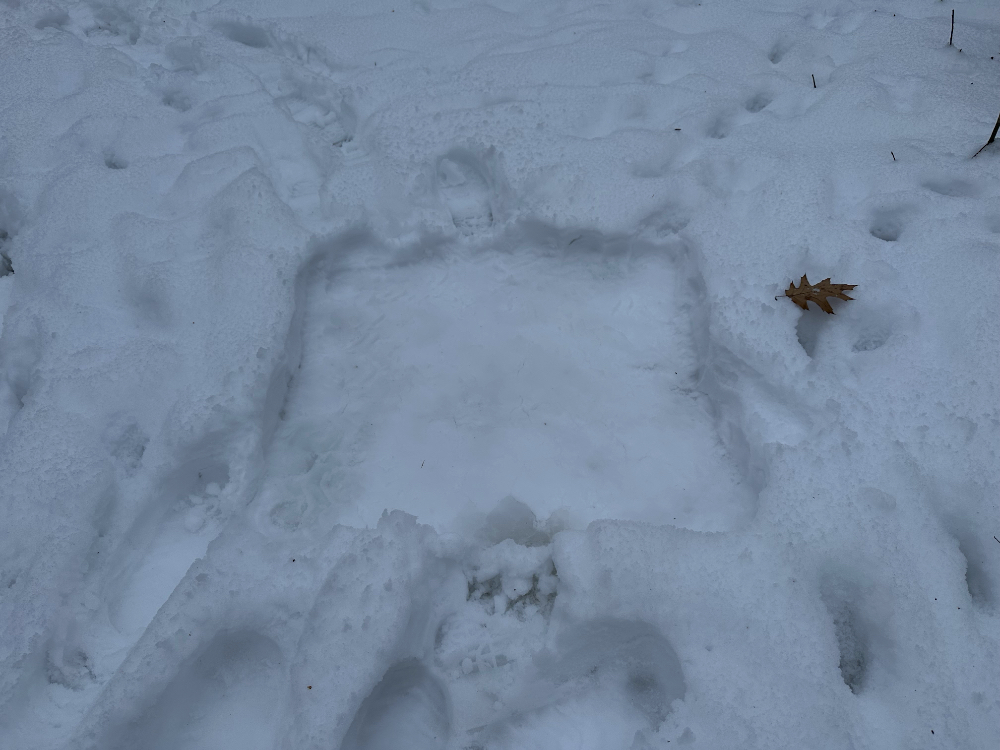 He worked on that effort for so long, my project of tamping snow grew to create a raised median at the intersection of the two trails where he was busy at it.