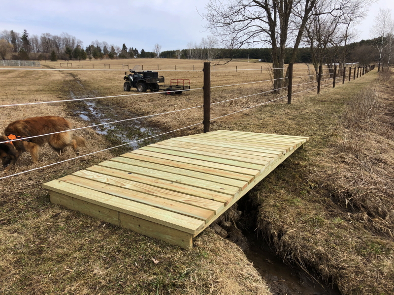 That provided motivation to get on with this bridge project sooner than later. Actually, I have a little extra time before the primary need arrives. During the growing season, I cut the grass along the strip just beyond the pasture fence to maintain a walking path, and the erosion blocked my ability to drive the lawn tractor beyond that point. The bridge is a solution to that barrier.