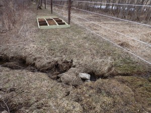 Not that I was looking for weather trouble. Quite the contrary. We already have the makings of a small canyon in the paddocks where draining rainfall has washed away the lime screenings into the main drainage swale. The battle against gravity and moving water is never ending in my quest to best manage runoff.