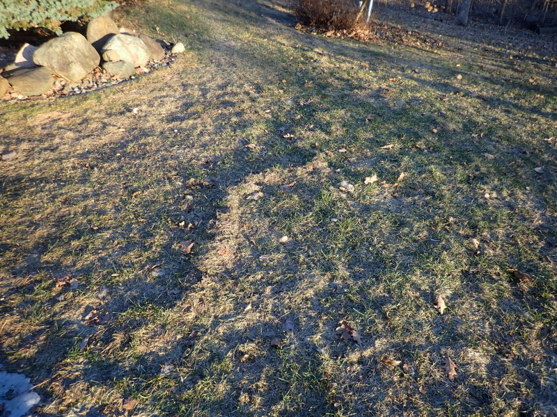 If we observe the yard at a distance, it looks just fine. There remains one dwindling pile of snow near the front door, but that’s about it. Today is officially the first day of spring.