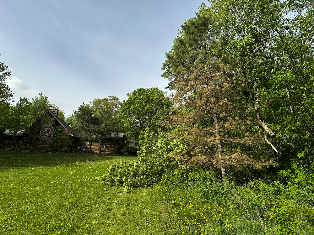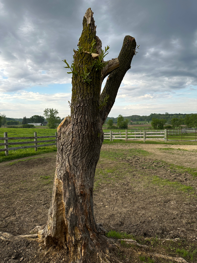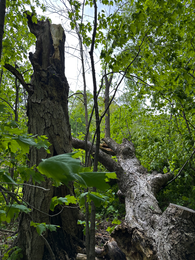 The tornado didn’t materialize, but we still suffered the loss of a big tree. So many maple leaves that just popped open in the last week, snuffed out in an instant.