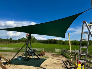 Since I’ve heard from several people with shade sails that they leave them up in the wind, I’m feeling less skittish about taking our chances with it.