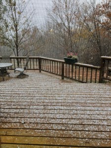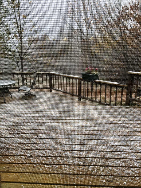 While I was visiting with the guy in front of our garage, the icy crystals started snowing down off tree branches all at once. It created a fairy tale scene that made it seem like we were in a snow globe ornament.