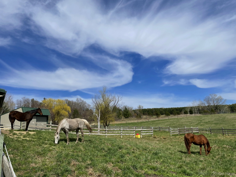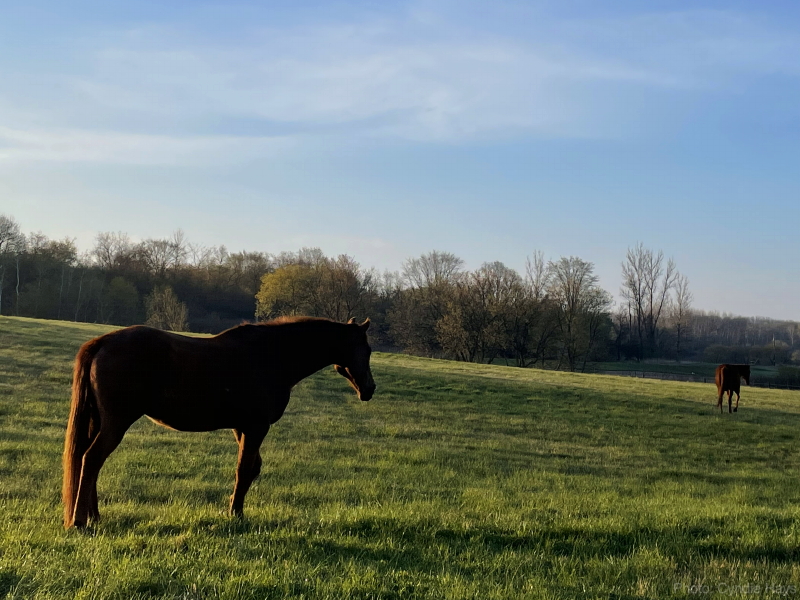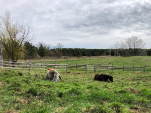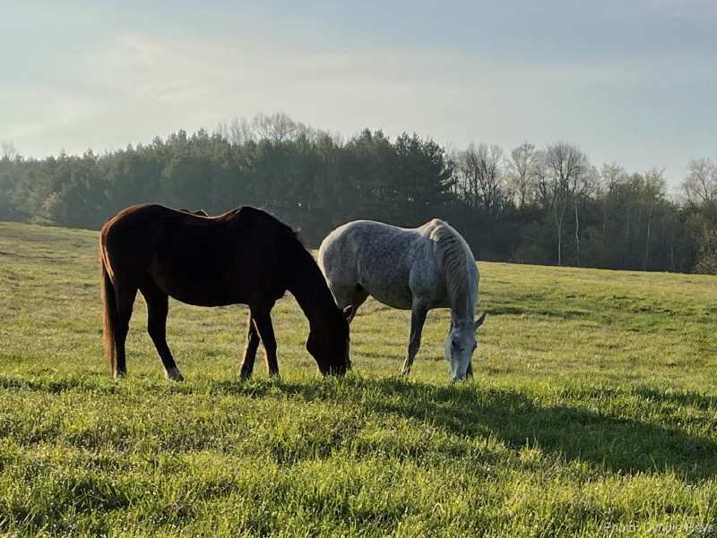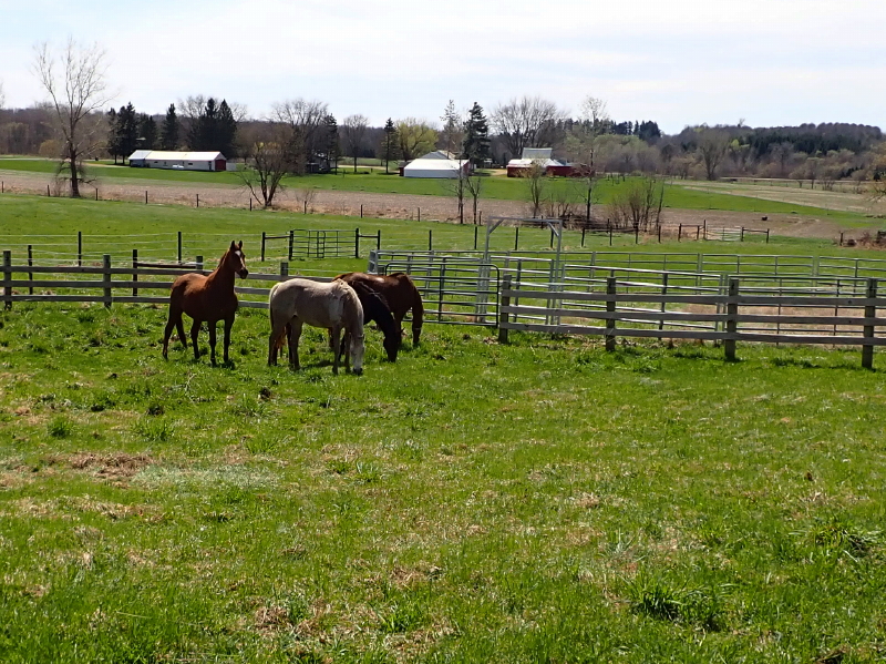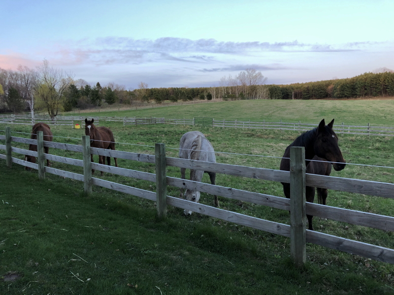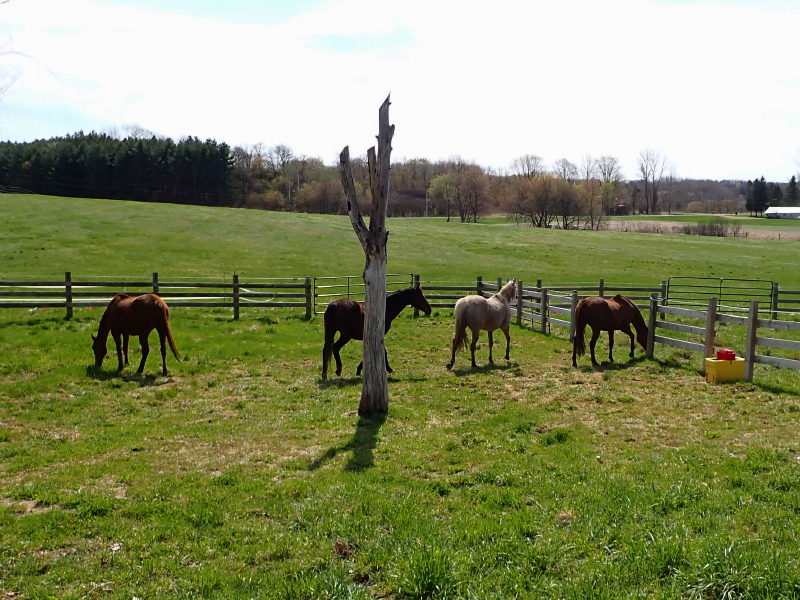 It was a big day for the horses yesterday on the front hayfield. The sun was out and they had already scouted the perimeter on the previous day, so now it was nothing but calm grazing in the increasing warmth of the morning rays.