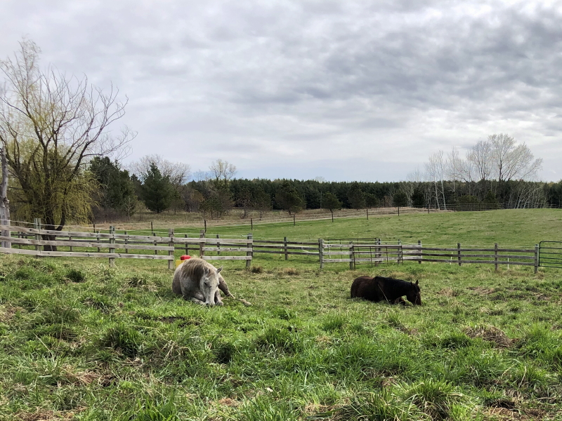 It seemed as though the sky came alive with energy in a reflection of how exciting it was to have horses back on our land. We felt great joy when they rather quickly took turns laying down which offers a clear demonstration of their comfort level with the surroundings.