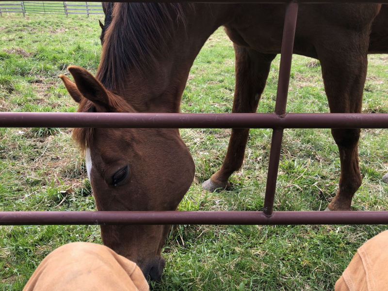 Slowly, but surely, Light made her way toward my feet at the gate, closing the distance by halves, then inch by inch as she munched. I purposely left my boot where it was, protruding beneath the gate in the direct path of grass she was working.