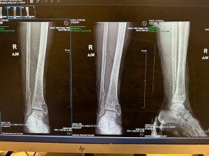 We are not bothered by needing to return in another week because it cuts any risk of complications from removing stitches too soon. At this point, the Athletic Trainer who looked at Cyndie’s ankle gave the healing scars a comforting level of approval.