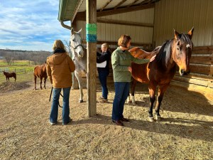 One bright spot I particularly enjoyed during the Nutritionist’s visit was the surprisingly social demonstration by the horses as we stood in the paddock and talked over their body condition scoring. All four horses brought their heads together around us, peeking over our shoulders and standing close without issue for an uncharacteristic amount of time.