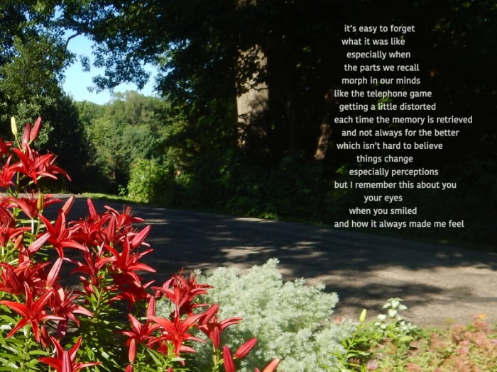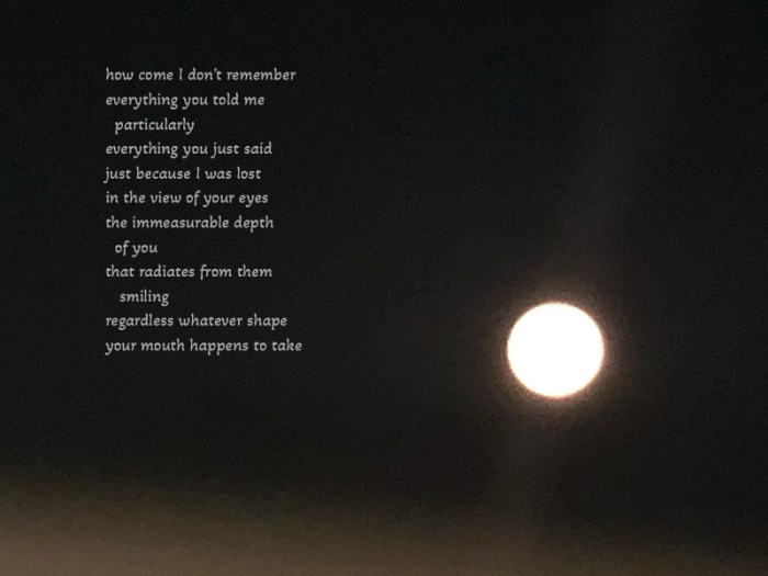It didn’t make any difference to me. I wasn’t listening. It was her eyes. I was lost in the mysterious feeling I was experiencing from the way they commanded my attention. It didn’t matter that she occasionally over-formed her mouth when she spoke certain words.