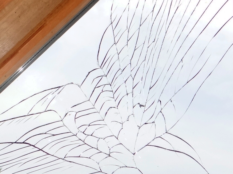 On the other hand, it looks interesting. I like the spontaneous pattern that appeared, unaided. Part of me is wishing we could keep it. Of course, I am all about balance and symmetry, so I would need the window on the other side to somehow fracture, as well. Picture me trying to initiate that happening. Epic fail.