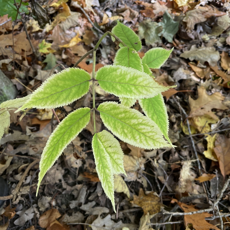 Close to the forest floor, Cyndie snapped this shot of leaves with an eye-catching fade from green to an absence of color.