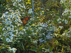 Yesterday, we found a batch of ten or fifteen Monarch Butterflies hanging around in our north loop field.