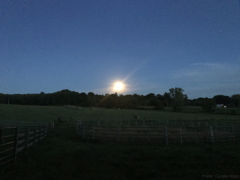 While Cyndie was down at the coop, she sent me a text with a picture of the moonrise. It enticed me to want to try a similar shot with my Olympus pocket camera. I like them both.