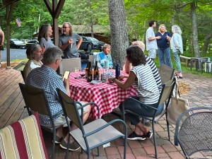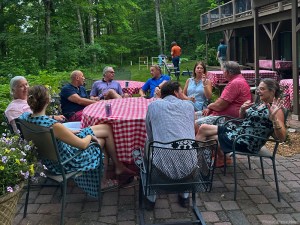 When the ribs were served, my hands were too sticky with barbecue sauce, and I got too engrossed in catching up on other people’s life adventures. When I finally thought of taking pictures while in the middle of a conversation, only by handing Elysa my phone and asking her for the favor did I get these snapshots of the continuing story exchanges still in process in the post-feast bliss of yet another annual Wildwood 4th of July picnic (despite the interruption of a brief nuisance rain shower that had occurred).