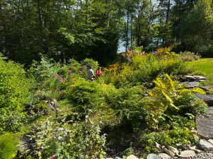 Never one to be intimidated by logical limitations about packing live plants in a plastic bread bag to stuff into an already full carry-on bag that gets crammed below the seat in front of her on an airplane, Cyndie brought home trees from the garden in Maine to plant somewhere around Wintervale.