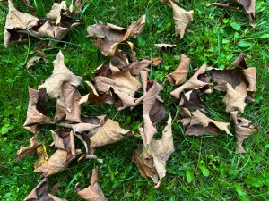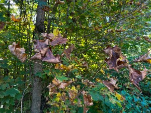 The leaves are changing, but not into the glorious reds, yellows, and oranges one expects in the fall. No, this year we are getting a predominant dose of browns.