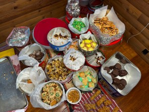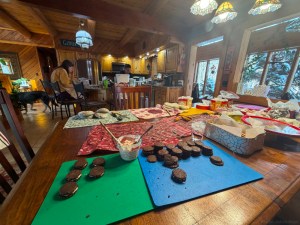 We sustained ourselves with a light lunch upon our return to the camp before taking a refreshing dip in the lake one last time. After a little siesta, the masters of food preparation rustled up a first-class spread of crackers, cheeses, spreads, olives, and salami, accompanied by some before-dinner beverages.