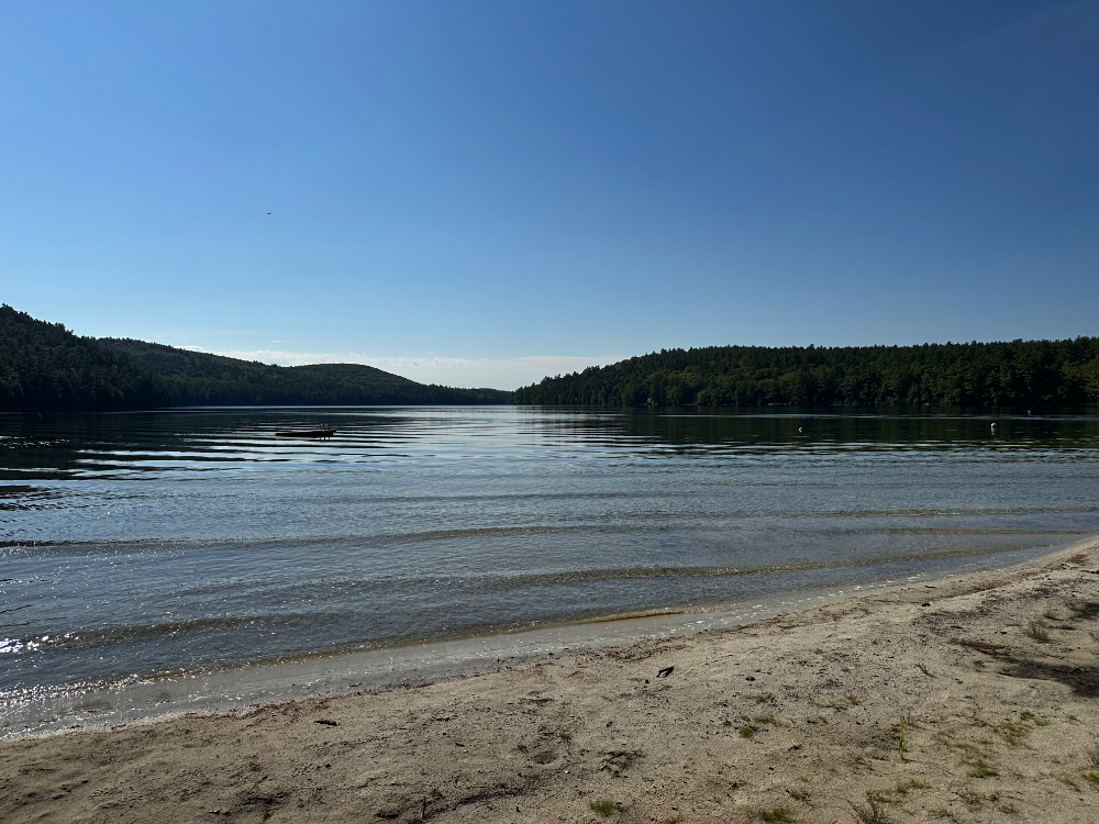 The sky changed from clear to cloudy several times during the hike and throughout the rest of the afternoon, casting shadows over the treetops covering the landscape all the way to the horizon. A clear overhead view of Colcord Pond is impossible to miss. It is an interesting contrast to the picture I took when standing on the shore just over an hour earlier.