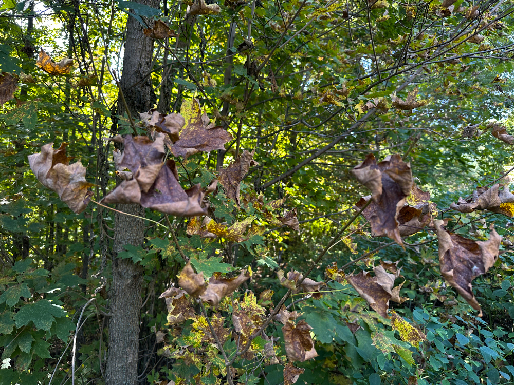 The leaves are changing, but not into the glorious reds, yellows, and oranges one expects in the fall. No, this year we are getting a predominant dose of browns.