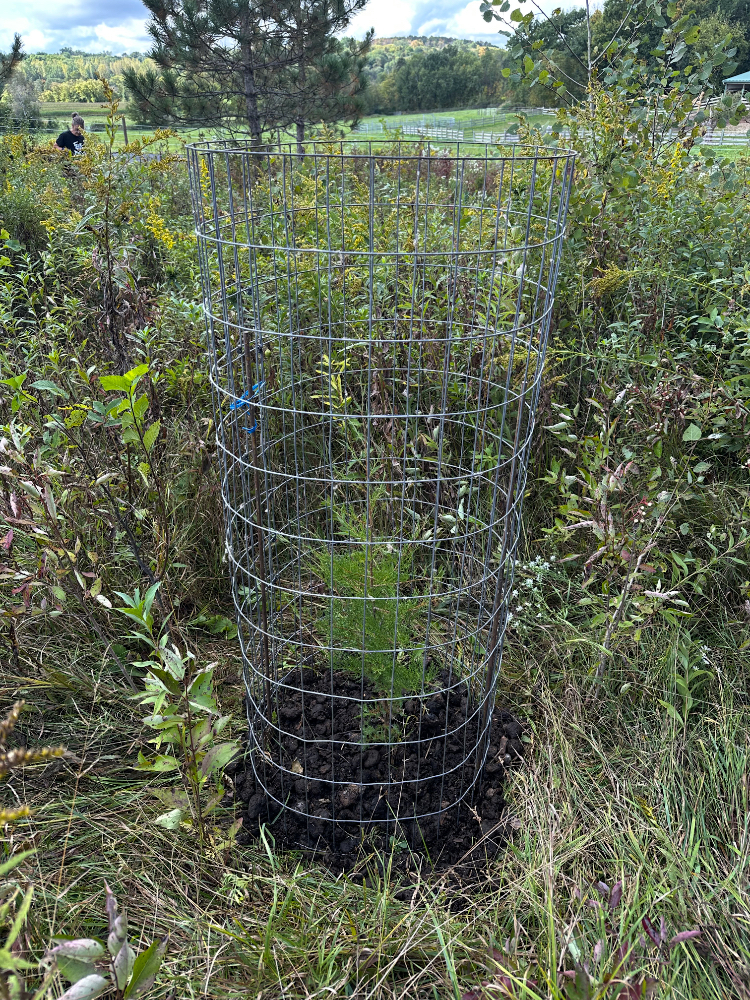 After writing my thoughts yesterday about protecting the small volunteer Cedar tree from the risk of having its main leader chewed off by deer, I figured it would be prudent to follow through without procrastinating. It’s funny how simple it can be to take action, yet my natural inclination aligns more with not doing things until action cannot be avoided.