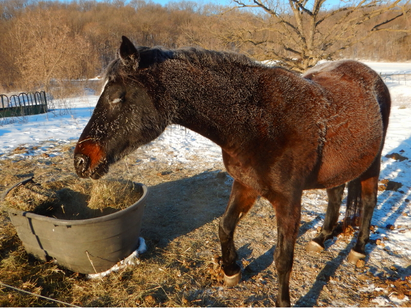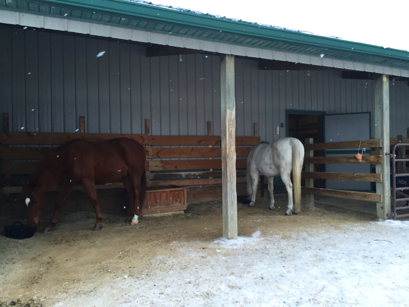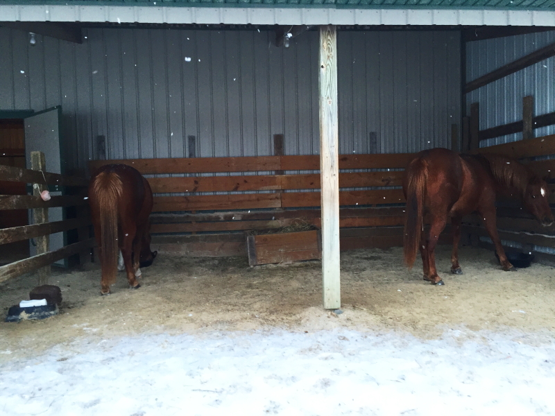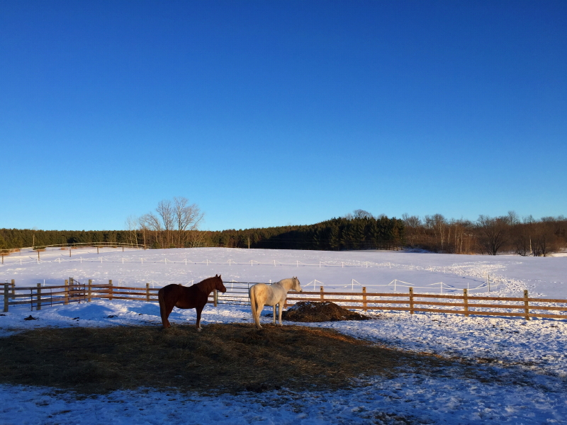 This past Monday, the horses were enjoying the last hour of our increasingly longer daylight while I was tending to the frozen manure pile closest to the barn. I have a sense that they are going to enjoy a warm spell, despite the messy footing it promises to provide.