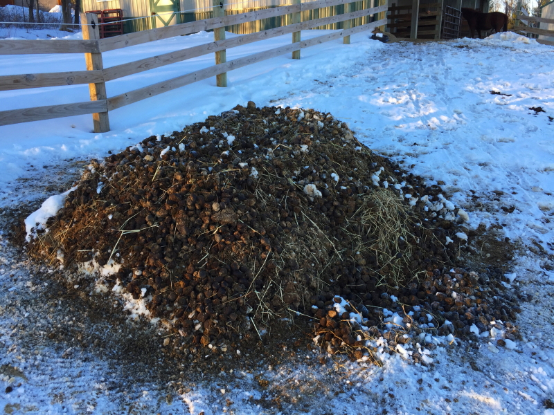 This is one of the not hot compost piles in our paddock. Not much in the way of decomposition happening there. Maybe that will change this weekend when the mega-melt of February is expected to arrive.