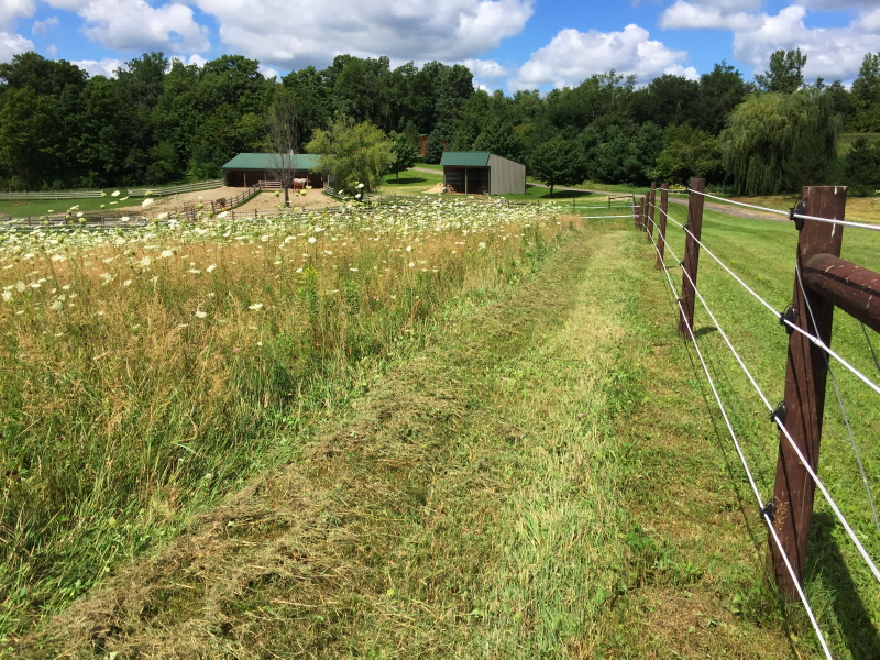 It took twice as long as I expected to finish cutting down the 4 acres we call our hay-field yesterday, but I was trying to do a very thorough job of removing the primary invader, Queen Anne’s Lace from sight. The biennial crop is the most visible evidence that we aren’t growing high quality grass hay out there yet.