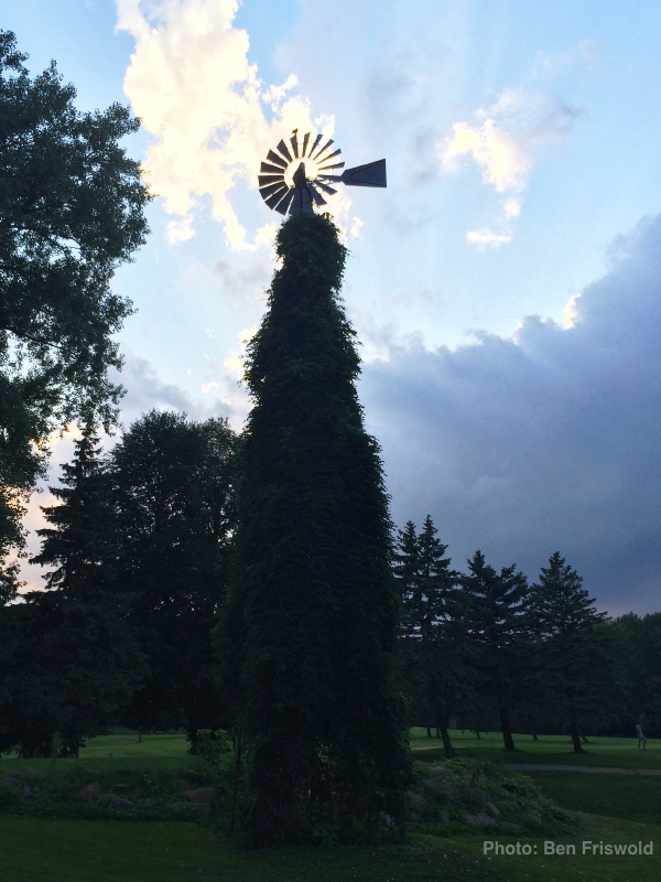 Cyndie’s brother, Ben Friswold, recently sent me some photos he took of the old windmill from Intervale Ranch which is still standing on the Braemar Golf Course in Edina. The course is undergoing some renovations that had us questioning the fate of the precious relic.