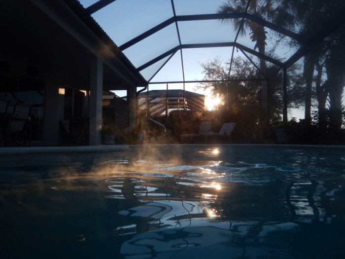 The morning was cold enough that there were wisps of evaporating moisture rising from the heated pool. I enjoyed a swim to start my day, despite temperatures in the 40s (F).