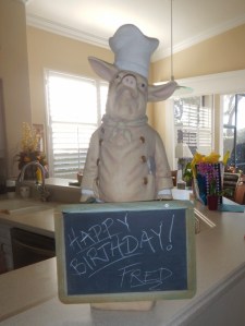 Yesterday was Fred’s actual birthday, so we updated the chalkboard sign in the kitchen.