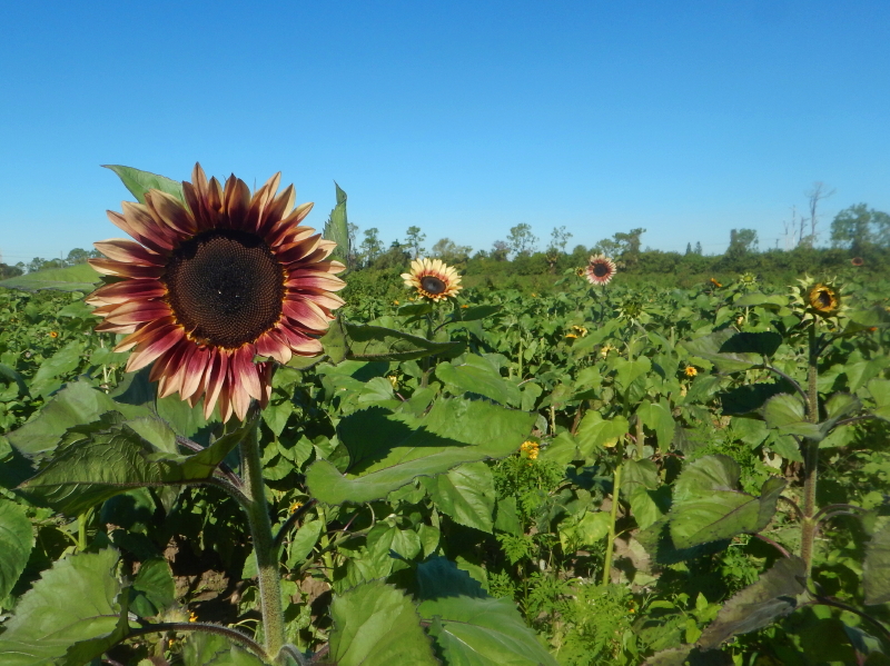 Fred was off braving the chill to get in a round of golf, so the rest of us went on an expedition to visit Farmer Mike’s U-Pick flower and produce operation.
