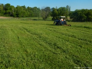 It took twice as long as I expected to finish cutting down the 4 acres we call our hay-field yesterday, but I was trying to do a very thorough job of removing the primary invader, Queen Anne’s Lace from sight. The biennial crop is the most visible evidence that we aren’t growing high quality grass hay out there yet.