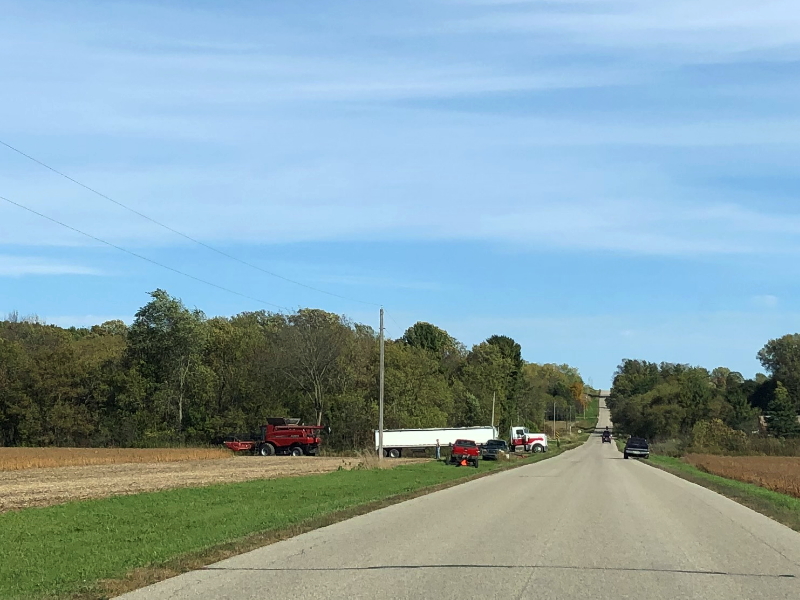 On a section of one of our county roads with barely a shoulder to speak of, we came face to face with a combine that almost filled the full width of both lanes.