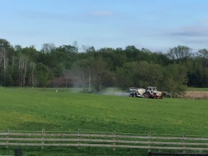The person renting our fields for cutting and baling hay showed up to fertilize the acres. I sure hope the weather gives him a fighting chance this summer to get some decent bales out of his efforts.