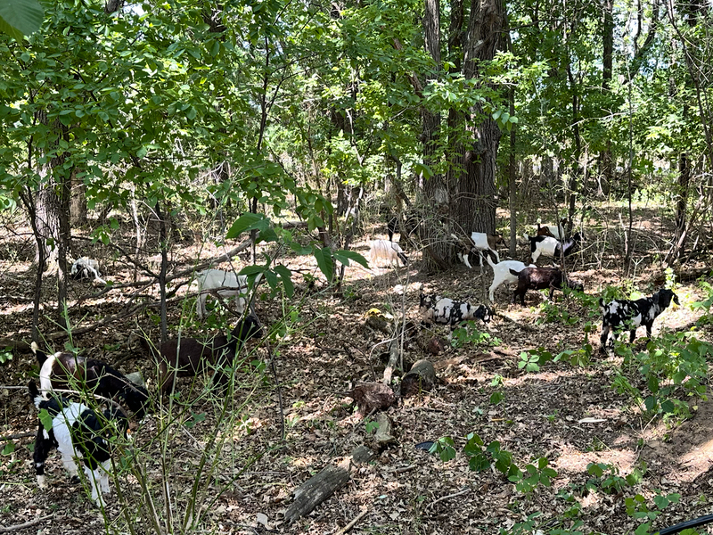 I was most impressed by the way the goats tip down tall young saplings so that others can reach the leaves which sets off a feeding frenzy.