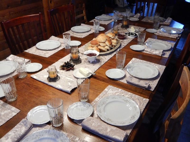 Speaking of leaves, we put all five extending leaves in the old Hays family table to provide generous elbow room for our modest-sized gathering.