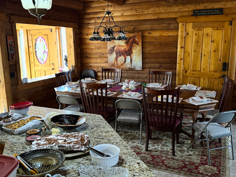 We had all 5 leaves extending the table to full-size and then added a card table at the end, which serves to really make it seem like a holiday feast.