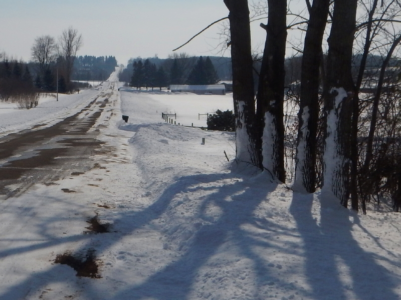 I took a picture to show how far snow flies off the township snowplow blade. That’s what I wish my little ATV plow blade could do. That’s not possible now that the banks on either side of our driveway are taller than the blade can throw. Guess I should have gotten that snowblower after all.