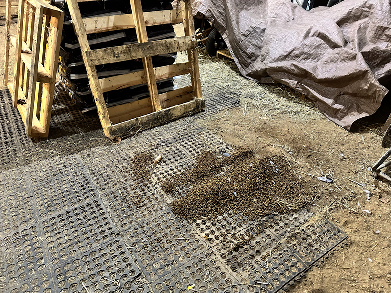 Asher had started to show extra interest around the pallet where bags of feed get stacked. I assumed it was likely rodents were leaving their scent under there and figured Asher wasn’t hurting anything since he wasn’t digging. Although, he was spending so much time there and being so quiet about it, eventually I decided to take a look for myself.