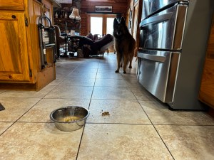 How strange it is to have our Belgian Tervuren Shepherd becoming finicky about eating. In our attempts to treat her for what was becoming chronic vomiting, she seems to have lost trust that we are offering nutrition in good faith. We tried hiding her two prescription pills in every possible enticing morsel. She ate the first one or two and ever after has successfully separated the pills from whatever we hid them in.