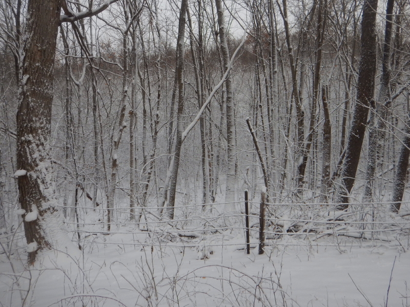 This weekend’s snowfall was certainly a pretty one. There was an interesting combination of stickiness and blowing. The tops of the trees didn’t hold the snow, but the lower trunks and branches sure did.