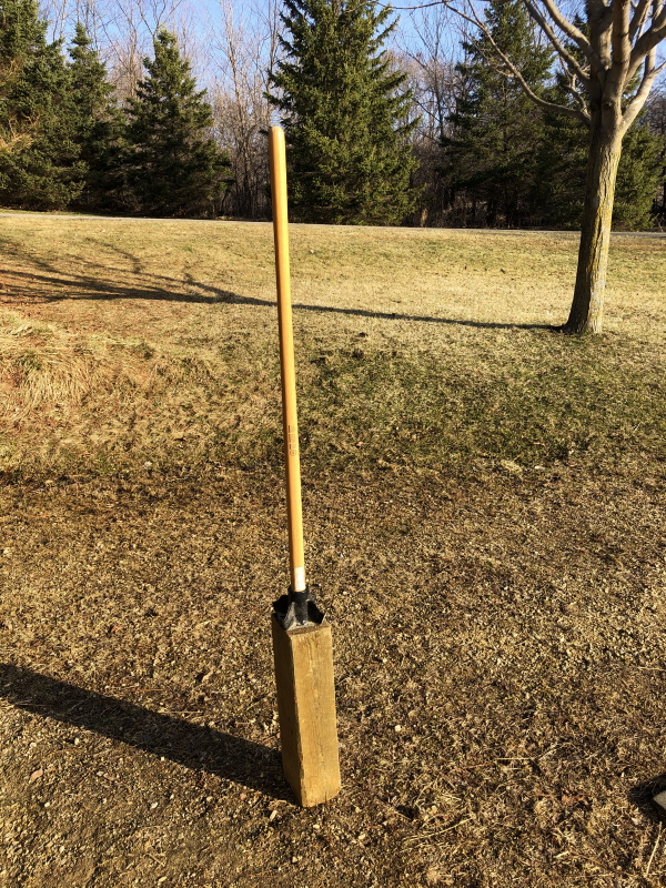 Yesterday spawned a new insight. I had a hand tool with a square steel pad for tamping soil that I figured would work to pound the top of the posts without damaging them. I also thought it wouldn’t hurt to add my 170 pounds of pressure to stand on a plank when slamming down on the top of a post.