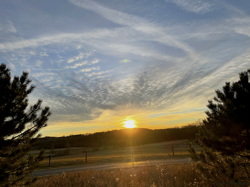 I was listening to music at the time and spotted a text from Cyndie urging me to step outside to hear “crazy sounds.” I had been aware of something going on outside but discounted it as likely the sound of a neighboring farmer harvesting crops or some other activity.